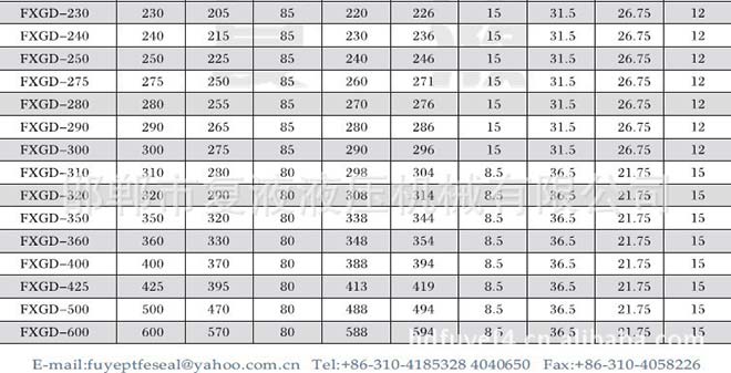 兩個導向環、兩個擋圈和一個密封環由聚四氟乙烯復合材料制成,彈性體由丁腈膠制成。
