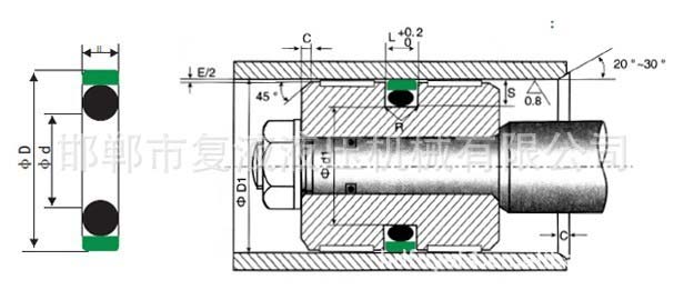 由高耐磨聚四氟乙烯復合材料矩形圈與O形橡膠密封圈組成。O形圈提供足夠的密封力,對矩形圈的磨耗起補償作用,與導向支承環配套使用,缸徑于Φ40的規格應采用分體溝槽。適用于液壓缸活塞密封,可雙向密封。