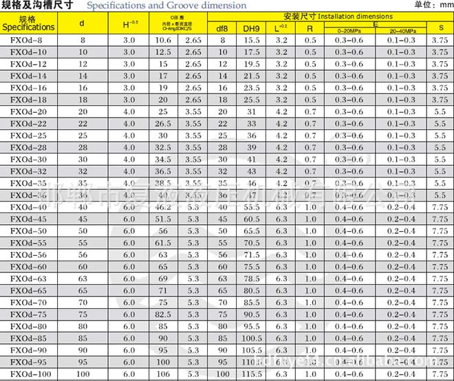 FXOd軸用方形密封圈